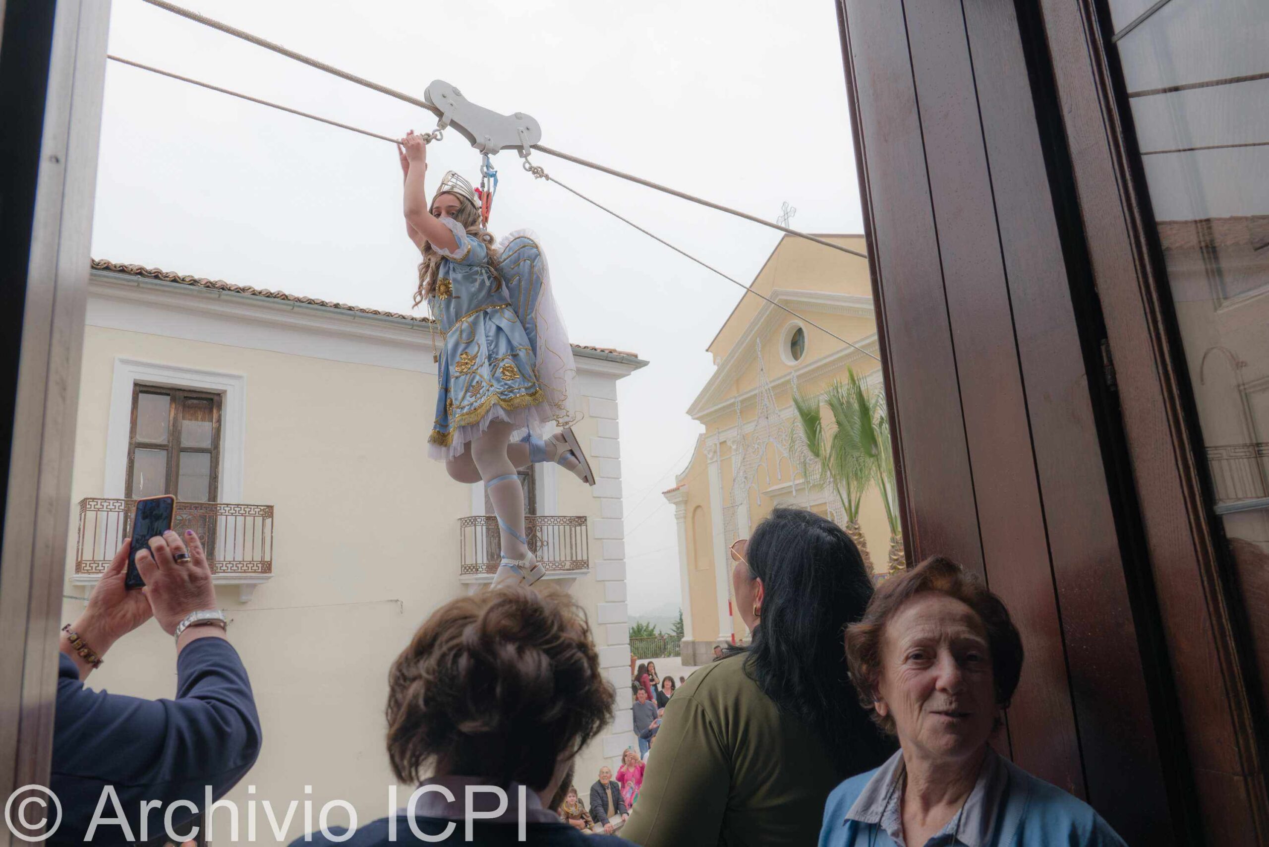 Il Volo dell'Angelo è una rappresentazione sacra che si svolge in occasione della festa di San Michele Arcangelo, e mette in scena la lotta tra il santo e il diavolo. L'arcangelo Michele è impersonato da un bambino (di recente, anche da una bambina), con un abitino azzurro, che brandisce la spada, sospeso su una corda d'acciaio per mezzo di un'imbracatura; procede dal campanile verso il diavolo, che emerge da un palchetto disposto nella piazza, avvolto dal fumo, col volto scuro e vestito di rosso.